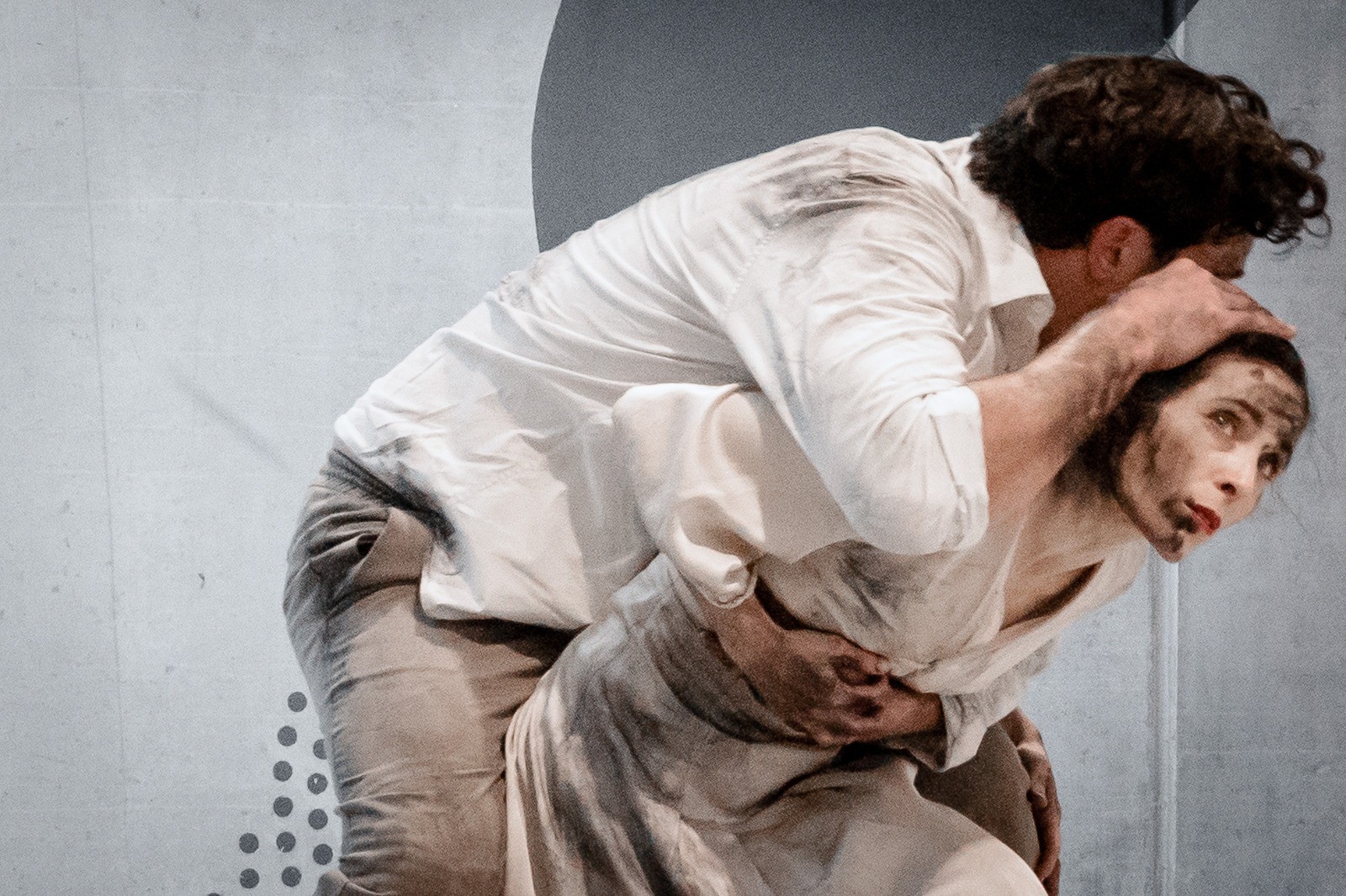 Par le mouvement, par le corps, par l’étreinte, ce duo est une démonstration d’amour, de puissance et de force. Vous êtes là, public, au moment où ils se rappellent ce qu’ils ont entendu, ce qu’ils ont vu, ce qu’ils ont fui . Réminiscence qui les rattrape sans prévenir. Qu’est ce qu’il leur reste? Le sol les salit, et la douleur de leurs chutes rappelle celle de leurs souvenirs. Vous entendez leurs respirations, vous sentez le vent sur vos joues le temps de leurs courses. Frôlé par un corps qui vous survole. Voilà ce que AFTER EFFECT vous propose. Une expérience au plus proche de la danse, dans votre environnement, celui d’une rue, d’un parc, d’un parking, d’une église, d’un champ, d’un hall de gare…